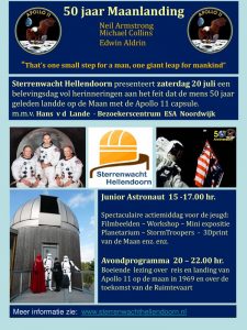 DE MAANREIZEN AFGESTOFT ! miniposter aankondiging 20 juli: speciale viering 50 jaar Maanlanding Apollo 11 Op zaterdag 20 juli aanstaande is het precies 50 jaar geleden dat Neil Armstrong en Buzz Aldrin op de Maan
